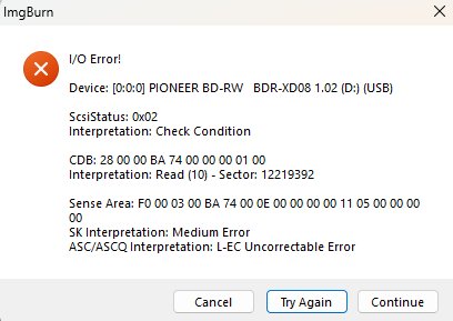 OrlandoEastwood Posted 6 hours ago Posted 6 hours ago Hello, I was having a problem trying to burn some back up Blu-rays for while I travelled. I haven't had any problems burning for the past two years or so and I have recently got a 25 pack of Kodak BD-R DL discs and four in a row were just coasters. Somewhere along the lines they failed to burn. So, I am a little confused as to why. I use DVDFAB and have ImgBurn 2.5.8.0 set to do the burning. The first three were just DVDFab using the file. And then I made an ISO file to see if burning that would fix the issue and alas, I am here. My burner, Pioneer BDXL BDR-XD08 is about a little over a year old. I have been burning regular single layer BD-R and dual layer BD-R discs until now. Whenever I inserted one of these blank discs, it gave a disc name of "CMCMAG-DI6-000" which I did a Google search and it was nothing but trashing the type of disc it is. ImgBurn.log